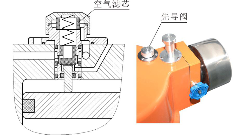 四、采用二位三通先導(dǎo)閥,上下通用,內(nèi)部設(shè)有空氣濾芯,更加可靠。