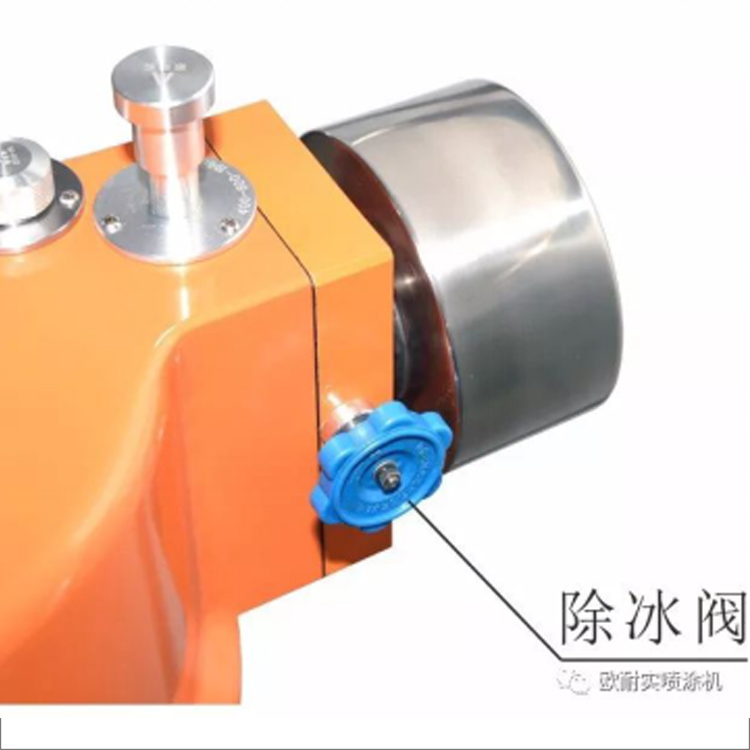 一、設(shè)有除冰閥。在寒冷地區(qū)施工因消音器排氣結(jié)冰導(dǎo)致噴涂機(jī)工作不正常時(shí),關(guān)閉噴槍,取下消音器,打開除冰閥,分分鐘消除冰堵!關(guān)閉除冰閥即可正常噴涂施工。